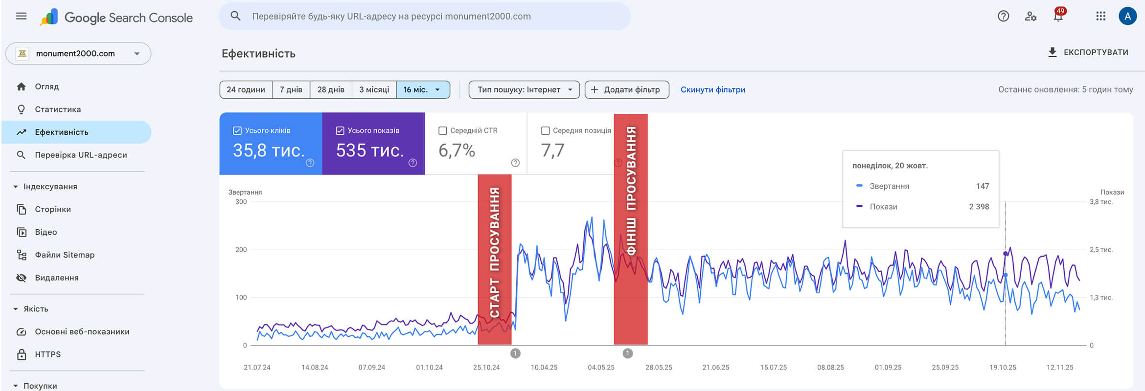 Через пів року після припинення робіт з просування, сайт стабільно приносить 4000+ кліків щомісяця (в середньому 140 кліків щодня).