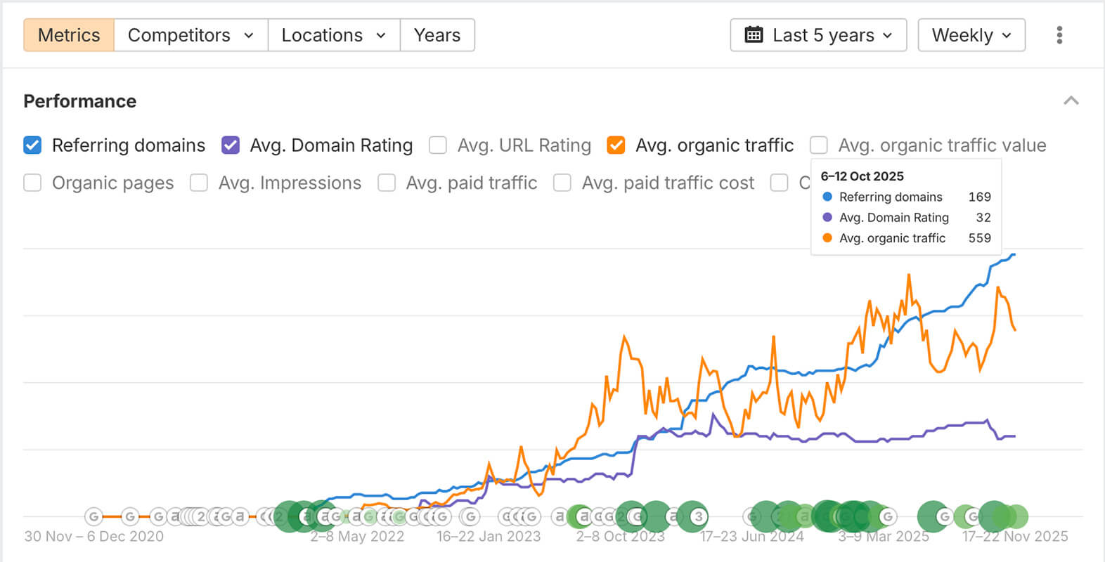 Так, суттєво збільшилася авторитетність домену: кількість якісних реферальних доменів виросла майже у 4 рази, що підняло доменний рейтинг більш ніж на 300%. У результаті сайт отримав стабільний органічний трафік, посилив позиції у своїй локальній ніші та сформував сильний фундамент для подальшого масштабування без втрати ефективності.